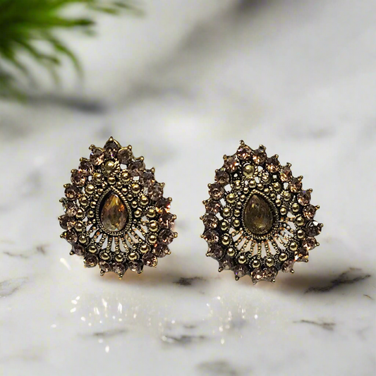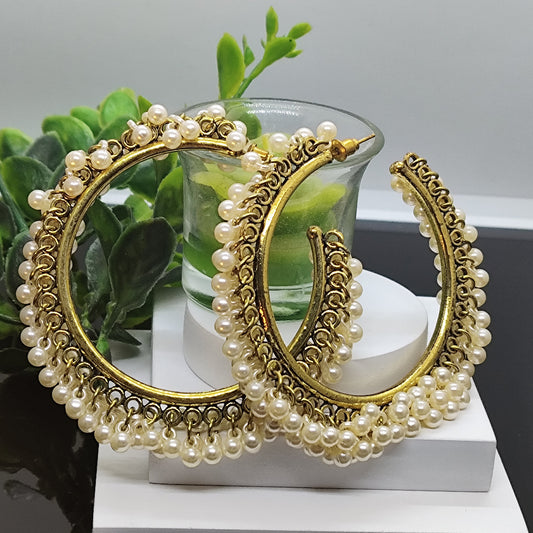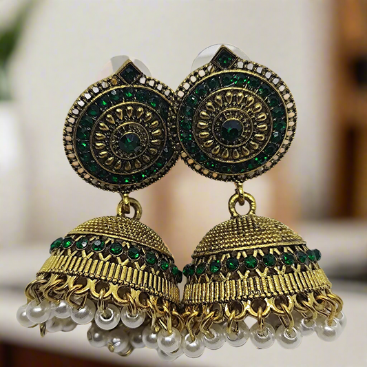 Ratnavali Antique Zirconia and Pearl Jhumka