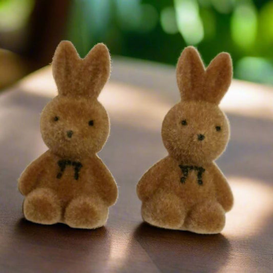 Brown Cute Plush Rabbit Statement Earrings