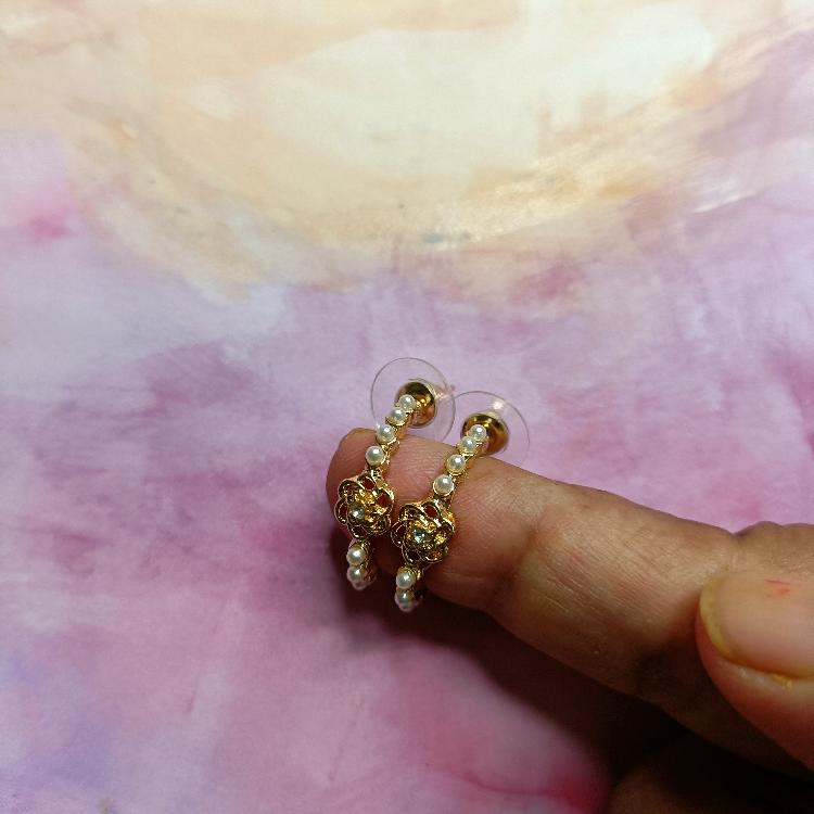 Material: Crafted from high-quality alloy with a gold-plated finish. The hoops are adorned with delicate pearls for a touch of glamour.