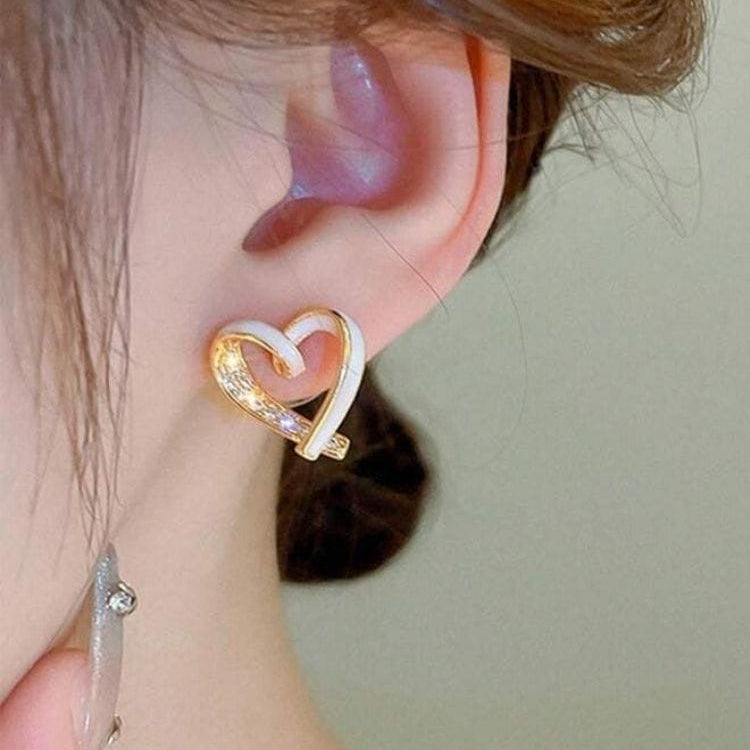 Express your love and affection with these delicate Close to Heart Minimal Stud Earrings. The intertwined heart design, adorned with sparkling rhinestones, symbolizes a bond that's close to your heart.
