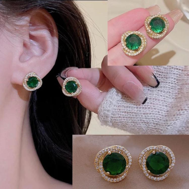 Material: Crafted from high-quality alloy with a gold-plated finish. The earrings are adorned with sparkling rhinestones and a vibrant emerald-hued center for a touch of glamour.